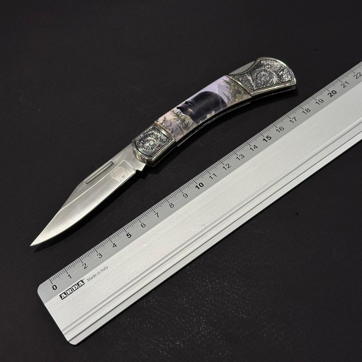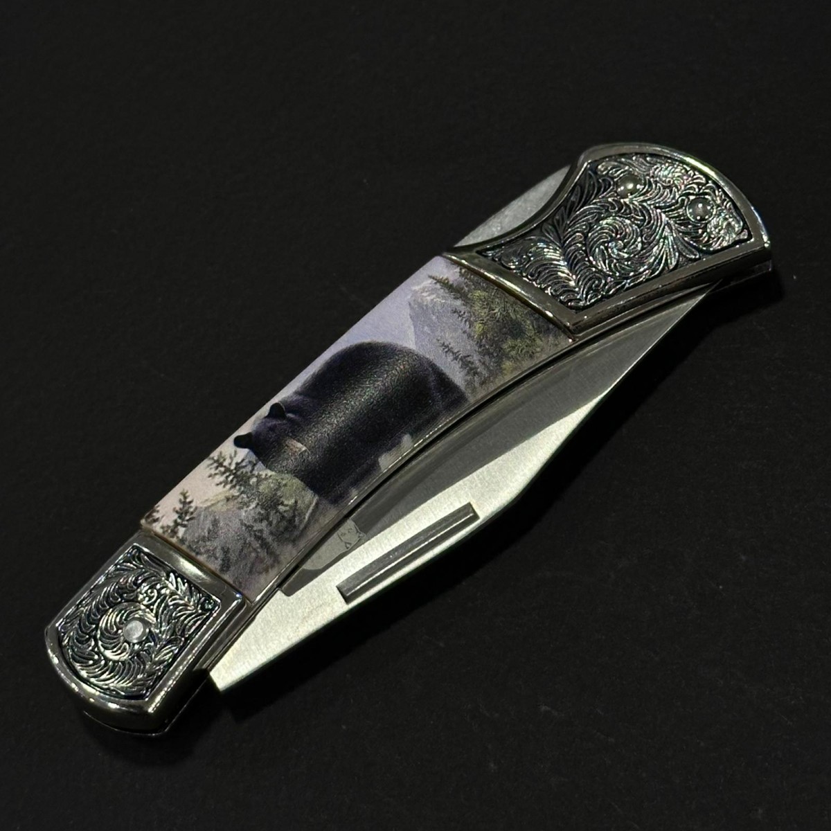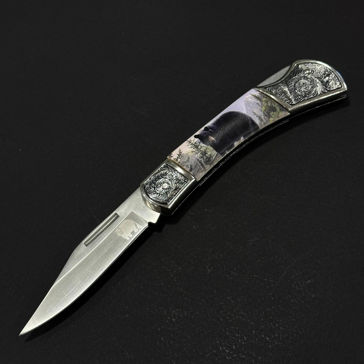Cuțit briceag camping Anima Urs negru 2 19cm, lama otel inox, mâner imprimeu, ANIM-URS19BLK2