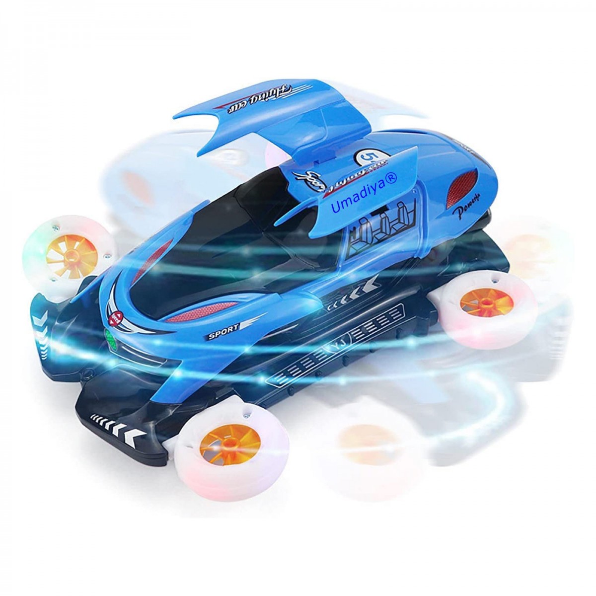 Masinuta acrobatica, cu iluminare LED, rotire 360 grade, albastru