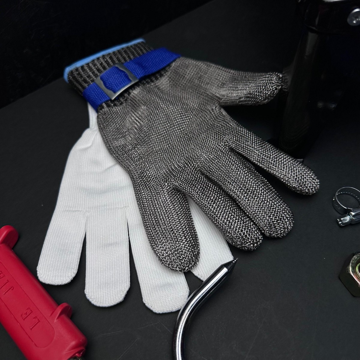 - Mănuși metalice incluse – protecție maximă împotriva tăieturilor
