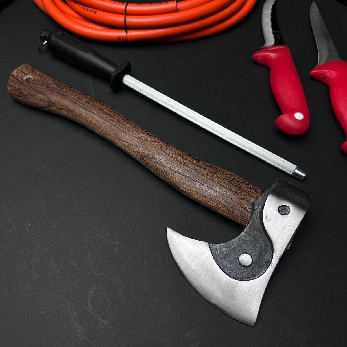 1buc. Toporisca taiat Yang 37cm, lama de 10cm, coada de lemn