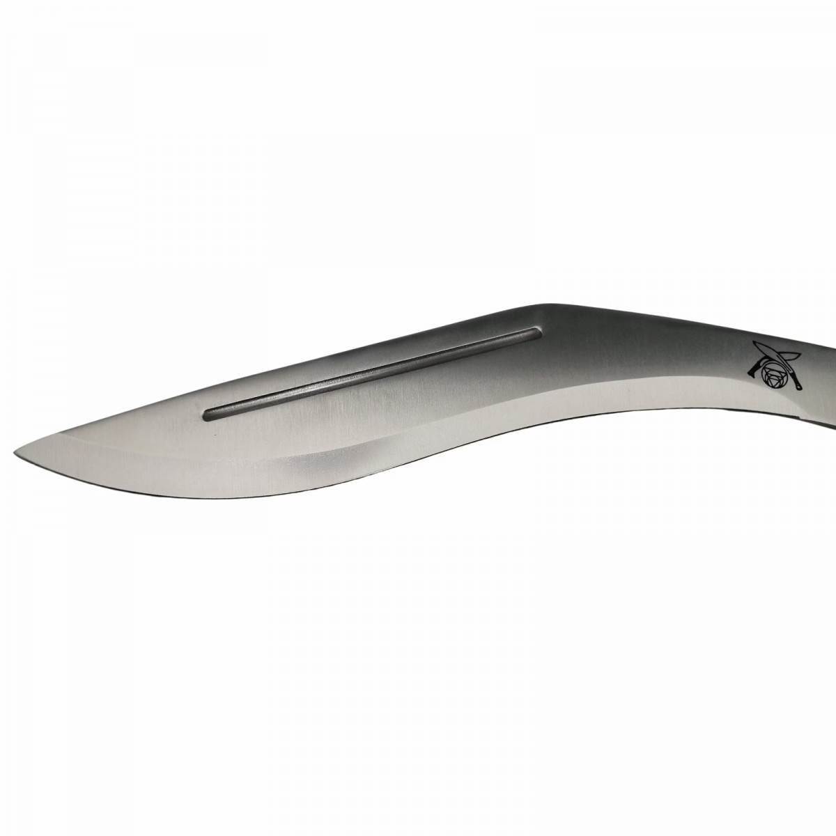 - Construcție: lamă integrală prin mâner (full tang) pentru rezistență maximă la lovituri și forțe mari