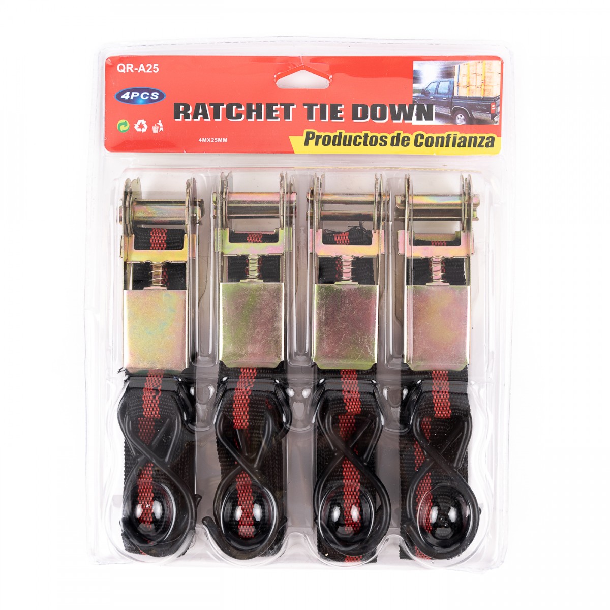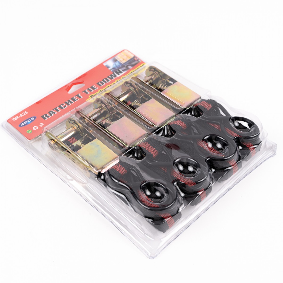 Set 4 chingi de ancorare QR-A25, lungime 4m, latime 25mm, negru