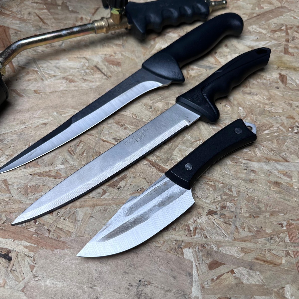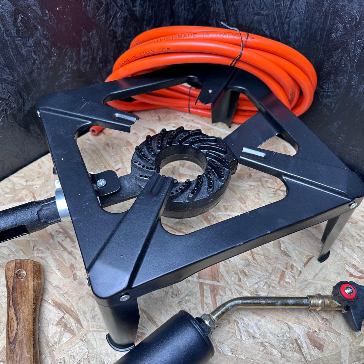 Set Măcelărie 7 Piese – Toporișcă, Arzător, Pirostrie, Furtun Gaz și 3 Cuțite Oțel Inoxidabil – Ideal pentru Camping și Gospodărie.