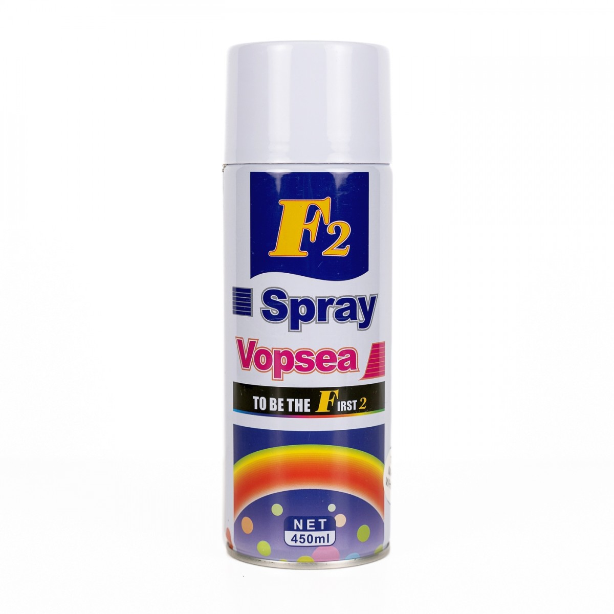 Spray vopsea aerosol F2, alb mat, 450ml, pentru metal, lemn si plastic