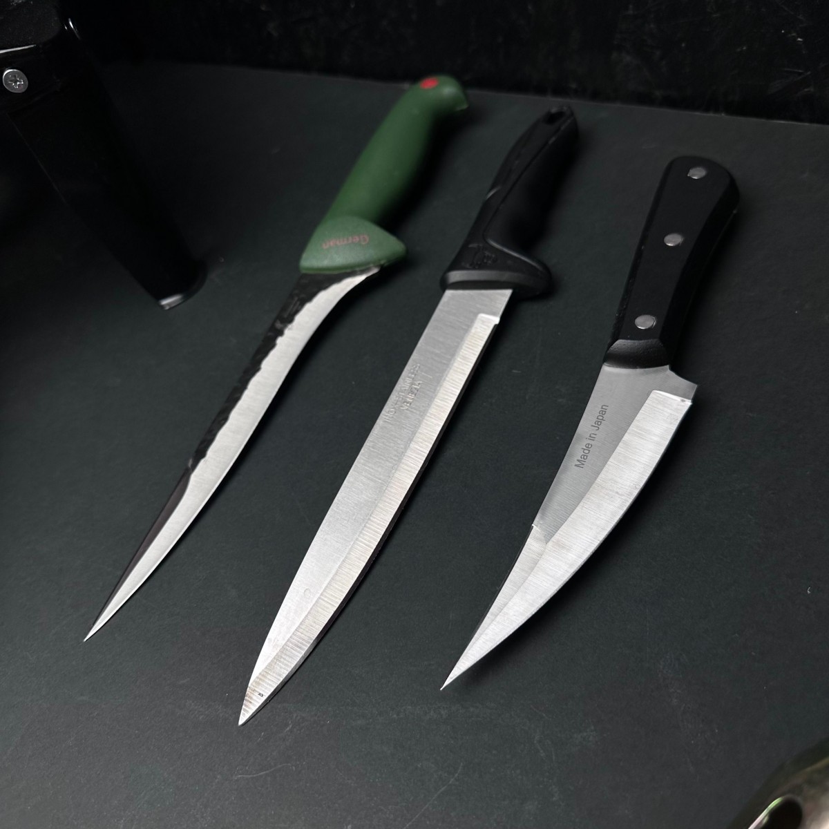 - 3 cuțite profesionale – fier forjat și oțel inox, pentru injunghiere, dezosare și tranșare